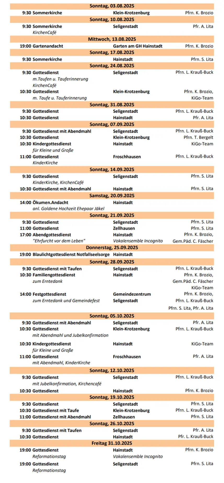 Unsere Gottesdienst-Orte, wenn nicht anders vermerkt: